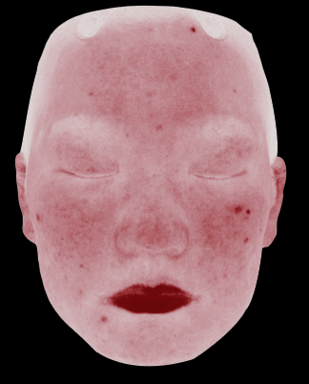 赤色領域診断 「肌の赤み」は、敏感肌や炎症、ニキビ跡など様々な原因が考えられます。Skin Pot 3Dは、赤みやニキビの評価を正確に行います。写真の左側(赤色領域分析)は、肉眼では見えにくい微細な赤みの分布や程度を可視化。